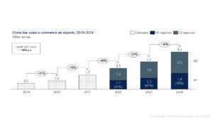 In 2024, China exported 4.4 million tonnes of low-value e-commerce through air, but in 2022, this number was roughly half. To put it in perspective, last year, roughly 12 thousand tonnes of low-value ecommerce exited China via air, or roughly 116 full B777-200 freighters. With a 38% per annum growth registered in the last 3 years, the demand for low-value ecommerce shows no sign of stopping.