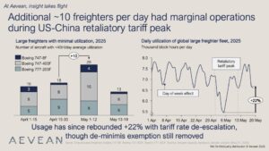 A fresh AeveanInsight by Kacper, who analyzed how freighter utilization is rebounding from the early May tariff spike. During the May 1–12 period, approximately 10 large freighters saw minimal use, tightening global cargo capacity. Since then, utilization has climbed 22% and is approaching April levels.