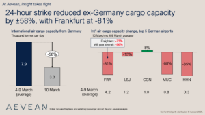 Aevean’s Sofia reviewed the data this morning and found that nearly 60% of international #aircargo capacity disappeared for the day, with FRA (-81%), MUC (-80%) and HHN (-85%) most affected.💡